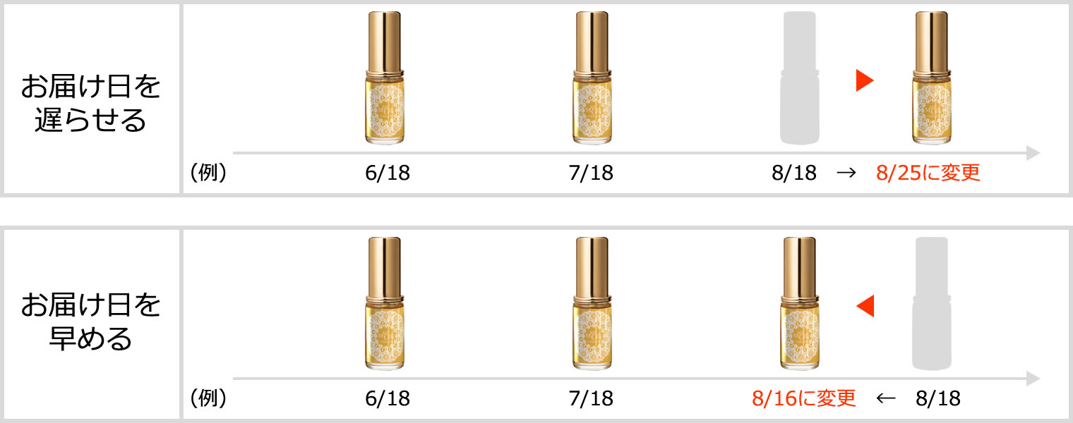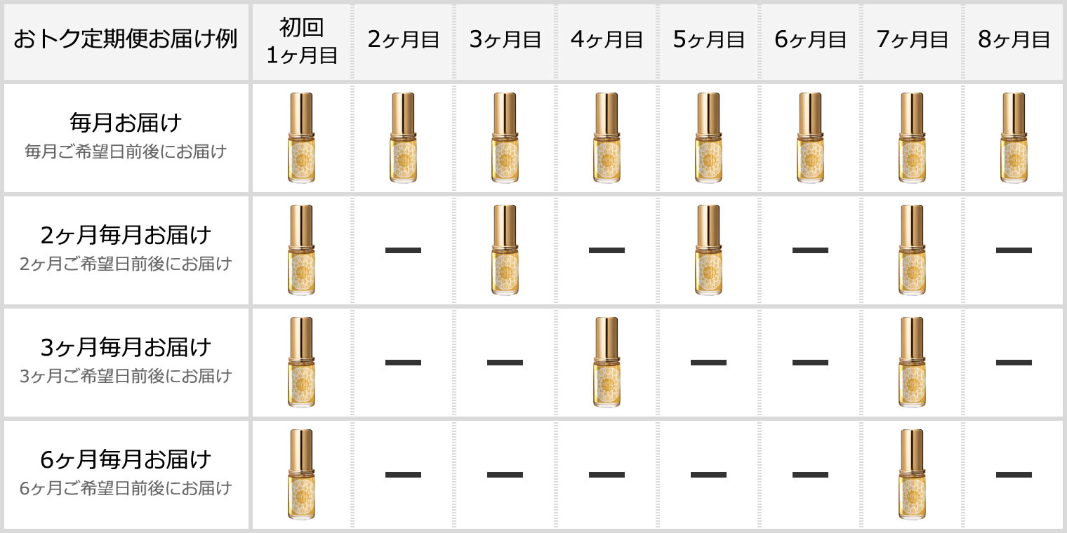 その都度ご注文いただかなくても、ご希望の日時に定期的に美容液をお届けるすシステムです。